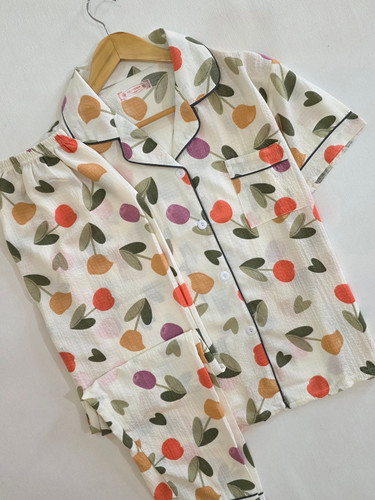 ست بلوزآستین کوتاه و شلوار راحتی نخی وارداتی - لطیف و ضدحساسیت